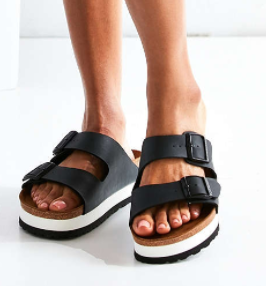 Slides are backless, usually open-toe, and are always flat. And I'll allow a very slight flatform slide into the sliders category as an exception, even though a flatform is kinda a heel.