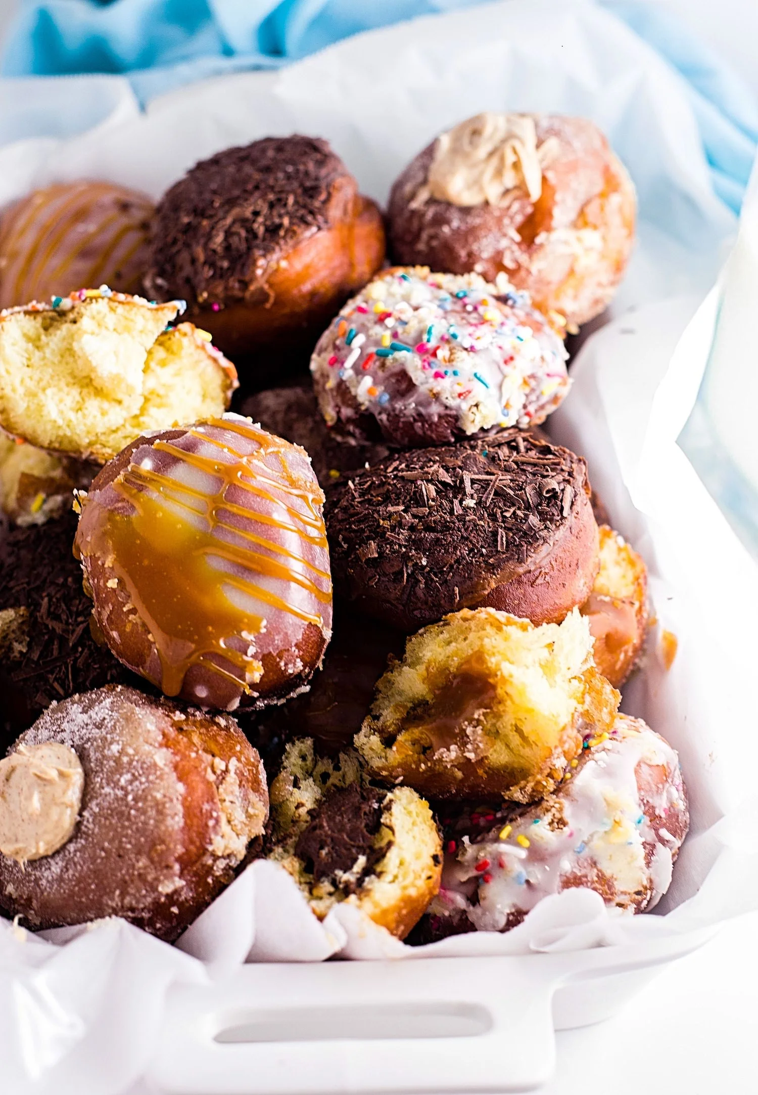 10. If you are glazing the donuts with the butter glaze from the Salted Caramel Donuts, glaze the donuts while they’re still warm. Otherwise, allow the donuts to cool before filling and glazing. Donuts are best eaten the day they’re made.